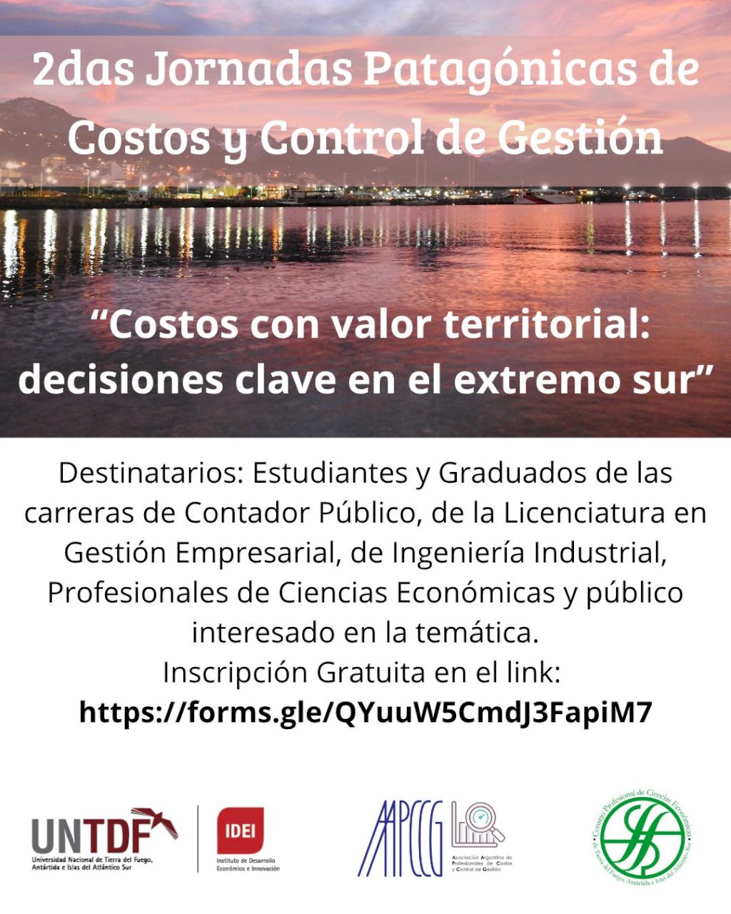 Ushuaia 18 de junio 2025.- El Instituto de Desarrollo Económico e Innovación (IDEI) de la Universidad Nacional de Tierra del Fuego, Antártida e Islas del Atlántico Sur, a través de la carrera de Contador Público, invita a la comunidad a participar en las 2das Jornadas Patagónicas de Costos y Control de Gestión, un espacio de debate y actualización profesional que se llevará a cabo los días 18 y 19 de junio a partir de las 17 en las instalaciones del Consejo Profesional de Ciencias Económicas de Ushuaia, ubicado en Hilario Ascasubi 67.