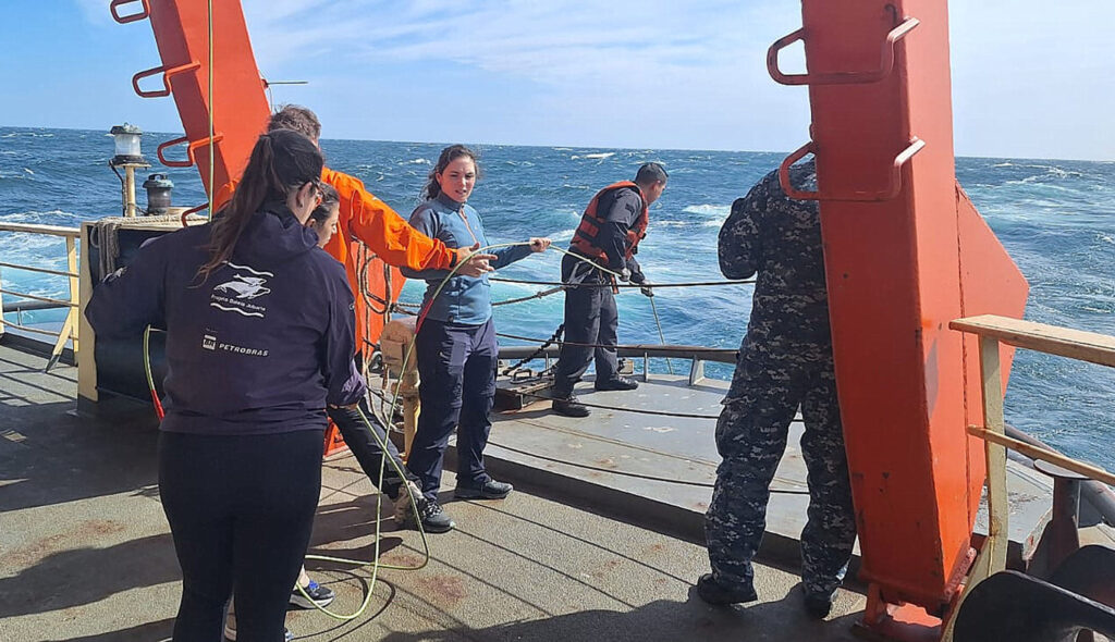 En los últimos días, los profesionales, junto a la dotación del buque, desplegaron un sistema de hidrófonos que permite detectar y caracterizar los sonidos emitidos por distintas especies de ballenas y otros cetáceos de la región. Estas tareas se complementan con observaciones visuales realizadas desde el puente del rompehielos.