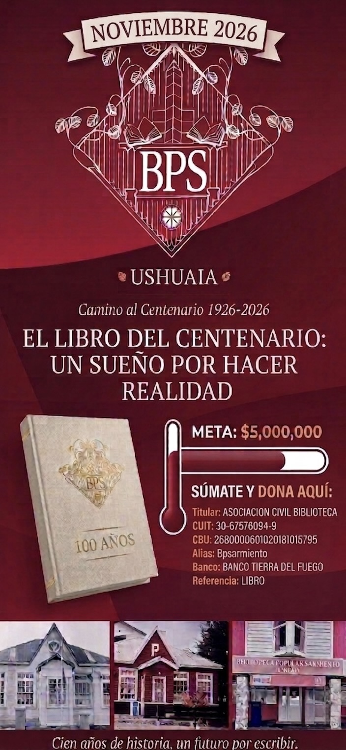 Ushuaia 27 de abril 2026.- En el camino hacia su centenario, la Biblioteca Popular Sarmiento de Ushuaia impulsa la edición de un libro conmemorativo que recupere su historia y el aporte cultural a la ciudad. Sin embargo, desde la institución advierten que aún no han logrado el respaldo económico necesario para concretar el proyecto.