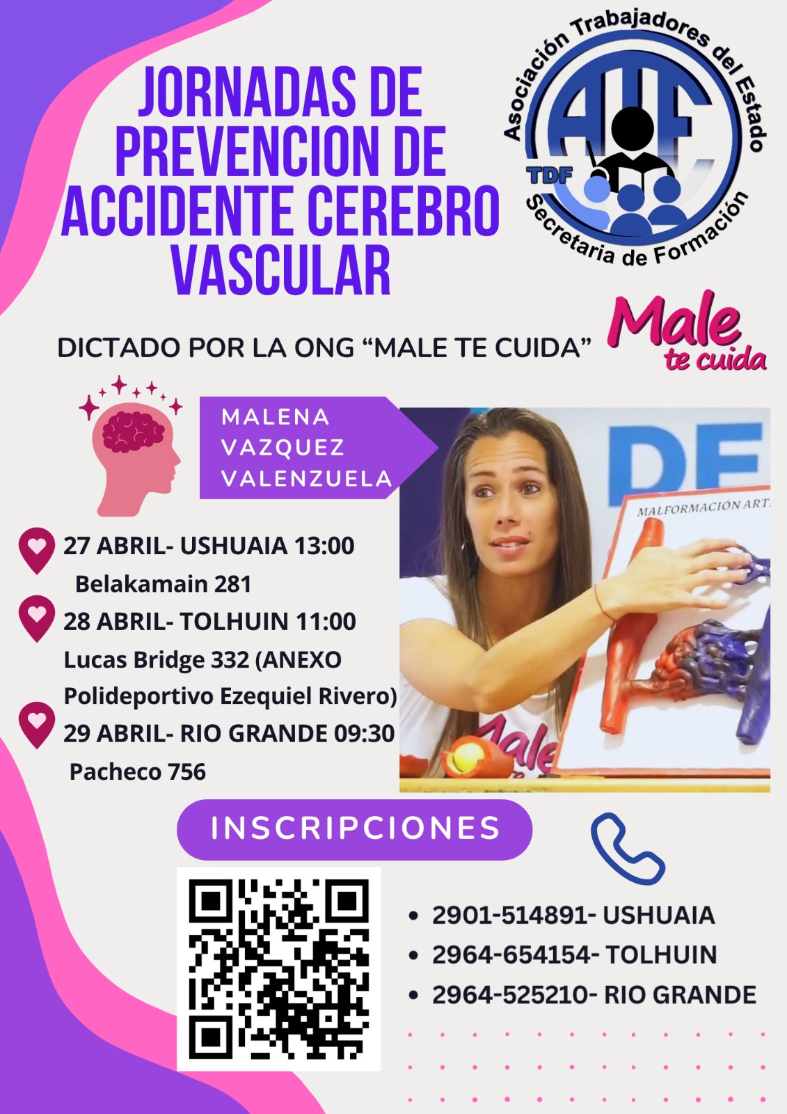 Ushuaia 13 de abril 2026.- Desde la Secretaría de Formación, junto a la ONG Male Te Cuida, se impulsan las Jornadas de Prevención de Accidente Cerebrovascular (ACV) como un espacio de encuentro, aprendizaje y concientización frente a una de las problemáticas de salud más urgentes de nuestro tiempo.