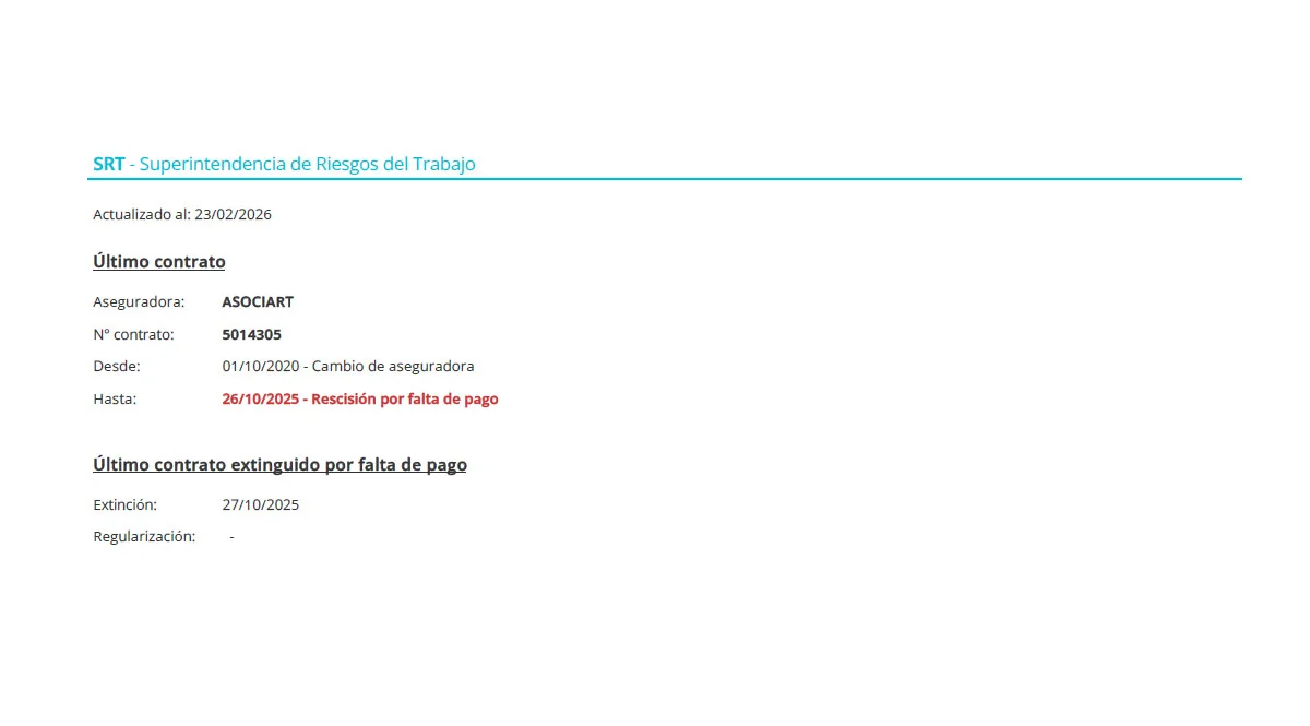 Esta condición deja a la empresa en una posición de vulnerabilidad legal extrema ante cualquier accidente laboral y demuestra que la cesación de pagos no se limita solo a impuestos o proveedores, sino que alcanza a la protección básica del personal.
